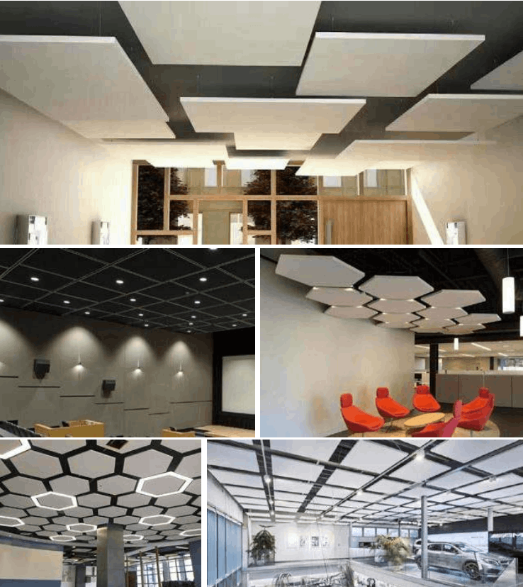 Sound absorber is a high sound absorbing acoustic material which can be hanged from the ceiling. It is always in a vertical hanging or horizontal