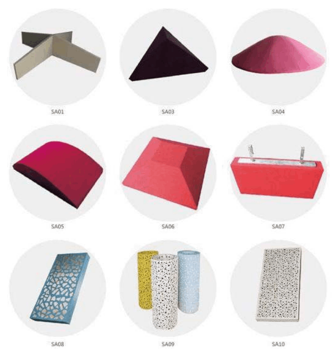 Applicable place | It is suitable for strengthening the sound absorption performance in the back cavity of various sound absorption materials, such as grooved aluminum acoustic panel, grooved acoustic panel, perforated acoustic panel, perforated aluminum panel and crystal-sand acoustic panel etc. |