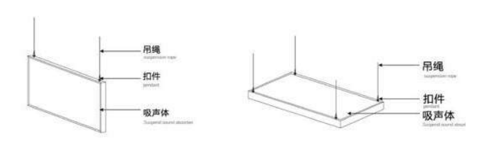 Sound absorber is a high sound absorbing acoustic material which can be hanged from the ceiling. It is always in a vertical hanging or horizontal