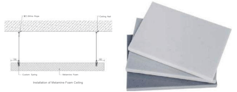 Melamine foam has high porosity, this allows it to consume and absorbed the soundwave deep inside the foam which will then convert the sound energy into kinetic and heat energy through internal friction. It is used for indoor sound absorption and noise reduction, no dust or harmful gas release during construction. It is used inside the resonant structure to improve the full frequencies and sound absorption.