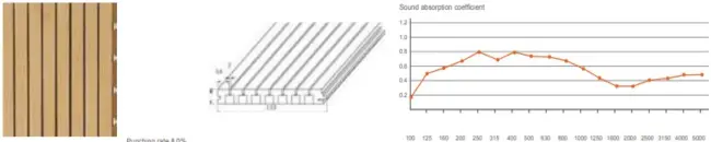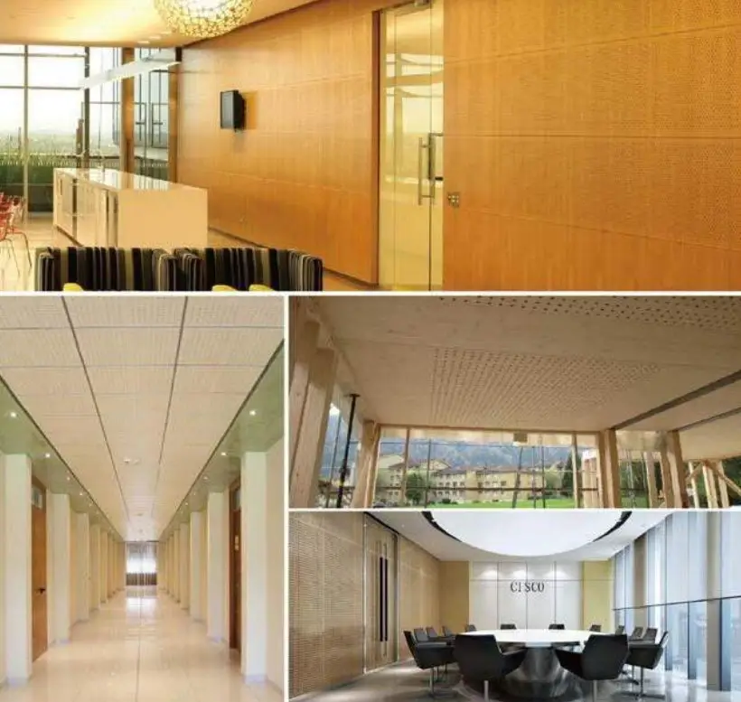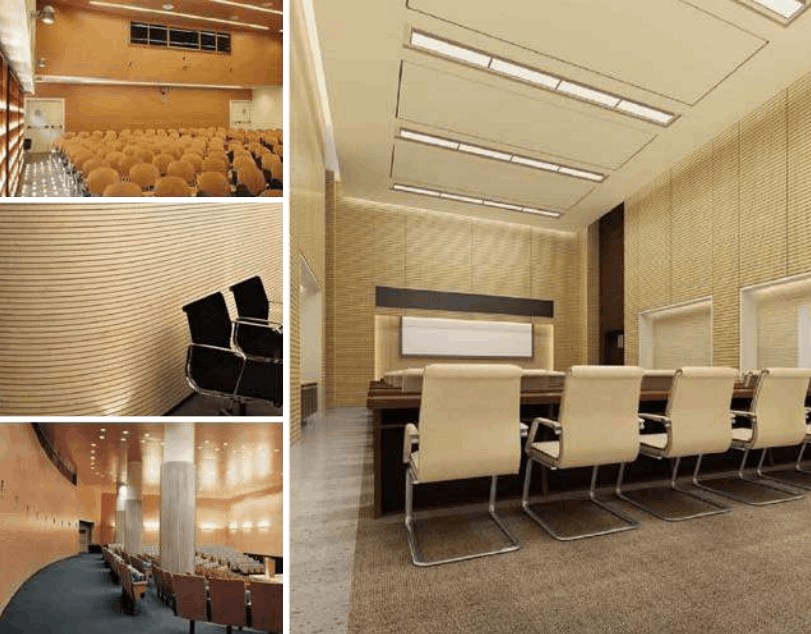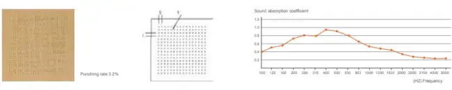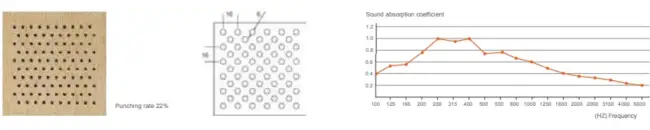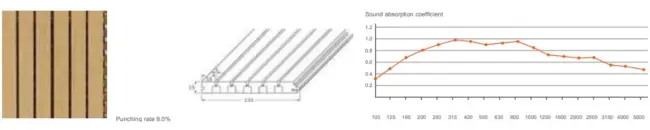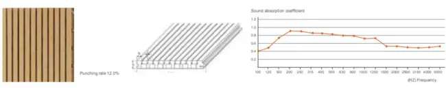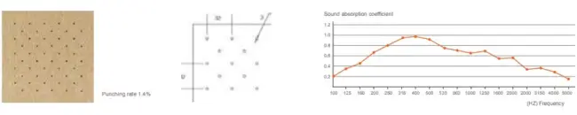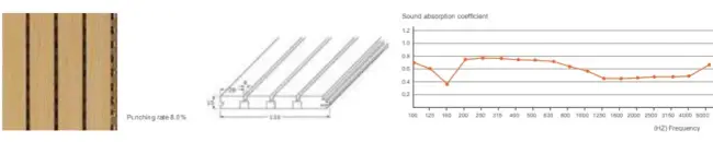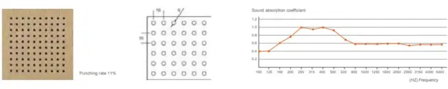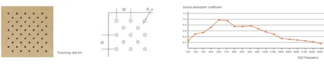 The structure of hole perforation in front and back is based on scientific calculation and acoustic principle. Wooden perforated acoustic panel has high sound absorption performance in low and middle frequency. It has various finish color and materials choice to meet customers diversified request for acoustic and decoration and provide safety promisefor environment protection and fire-resistant