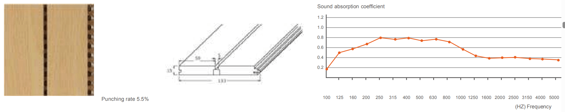 Sound absorption coefficient | 0.30 | 0.42 | 0.55 | 0.75 | 0.82 | 0.80 | 0.92 | 0.90 | 0.80 | 0.61 | 0.52 | 0.50 | 0.45 | 0.35 | 0.30 | 0.26 | 0.24 | 0.24 |