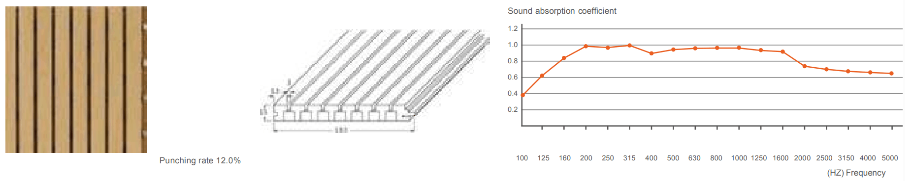 Sound absorption coefficient | 0.32 | 0.38 | 0.48 | 0.80 | 0.88 | 0.95 | 0.95 | 1.08 | 1.00 | 0.95 | 1.00 | 1.00 | 0.95 | 0.93 | 0.80 | 0.79 | 0.75 | 0.80 |